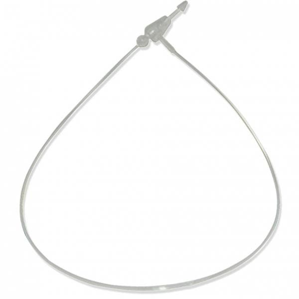 Хомут для подвешивания ценников, этикеток, полиэтиленовых карманов ПВХ. Распространенное крепление на различной продукции. Защелкивается в специальную петлю. Предназначен для одноразового использования.