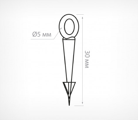 Длина - 30 мм. Диаметр ушка - 5 мм.