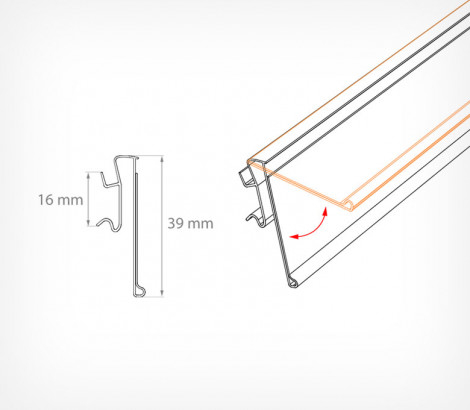 Ценникодержатель ARN используется для размещения ценников на профильных полках ARNEG. Гибкое крепление ценникодержателя позволяет откидывать ценник вверх и предотвращает случайный демонтаж или повреждение. Ещё один вариант — ценникодержатель полочный ARN39-26 для полок ARNEG с высотой замка 26 мм.