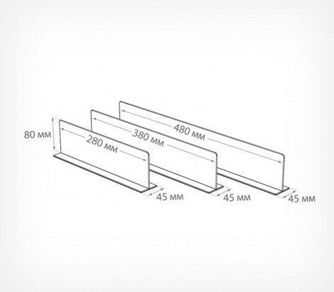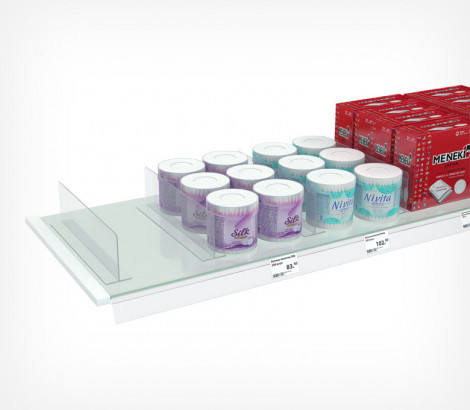 Разделитель DIVТ-80 Т-обр. высота 80 мм — универсальный разделитель товаров для организации выкладки на стеклянных, деревянных или металлических полках магазинных стеллажей. Подходит для полок глубиной 300 мм; подходит для использования с большинством товаров из ассортимента супермаркетов, аптек, магазинов формата дрогери, косметики и канцелярии;не требует дополнительных крепежных аксессуаров для установки;