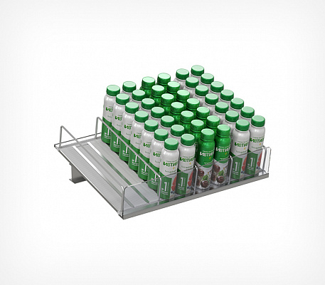 Основная часть роллерной системы FORTA ROLLER, по которой продукты перемещаются к краю полки. Материал: ударопрочный пластик, алюминий. Может быть изготовлена практически любого размера с шагом 50 мм. Легко устанавливается на полку стеллажа и проста в обслуживании. Подходит для широкого ассортимента продуктов одной линейки в твёрдой упаковке. Особенно эффективна для товаров с импульсным спросом и высоким оборотом. Удобна для выкладки тяжёлых продуктов, а также может использоваться на верхних и нижних полках.