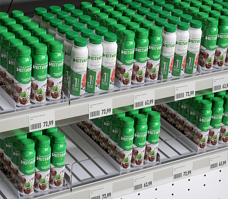 • Необходим для разделения товаров на полке. Высота разделителя должна быть не менее 1/3 от высоты продукта. Если полка является крайней, то для предотвращения падения продуктов используется высокий разделитель с этого края.