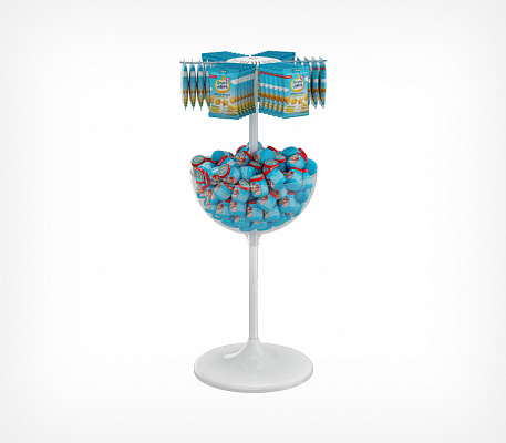 Дисплей UNIBOWL-24-HP-6 предназначен для выкладки продовольственных и непродовольственных товаров в компактной и неустойчивой упаковке в чаше и в упаковке с широкой петлёй (европетля) для подвешивания на крючках.